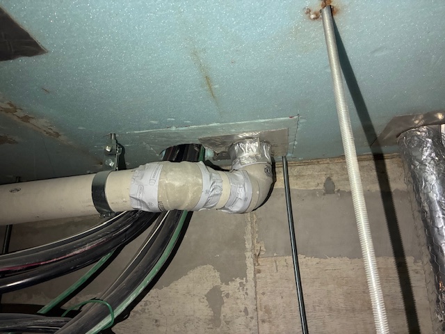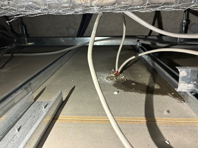 天井内で感知器付近で水たまり確認